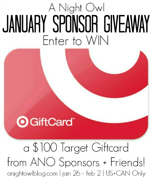 Just in time for Valentines shopping! Today the sponsors and friends of A Night Owl are joining up to bring you an amazing $100 Target Gift Card Giveaway! And we all KNOW you love Target, so what are you waiting for? Enter today via the Rafflecopter form below!