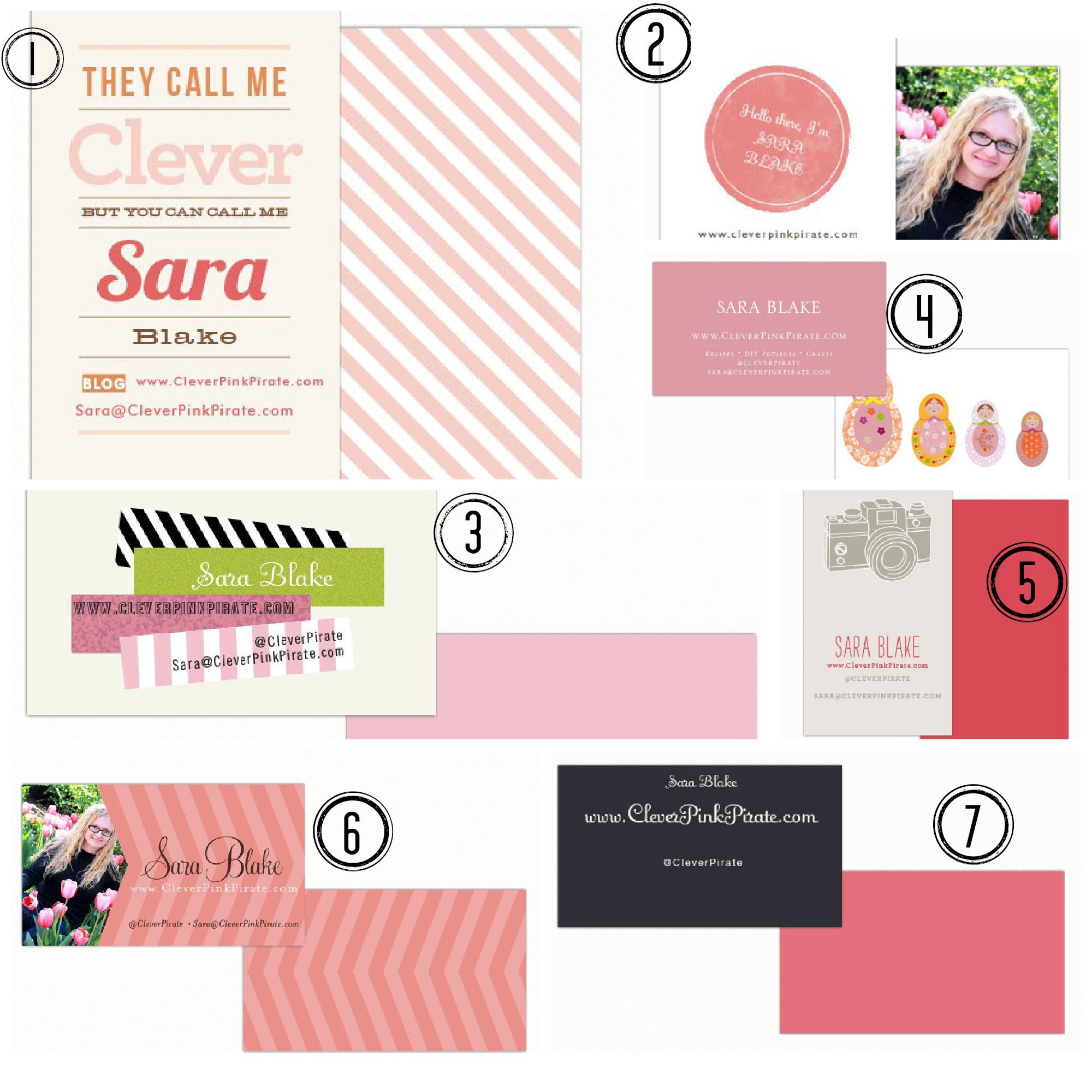 Love #6 with the pink stripes plus your pretty face. It’s time for me to get new business cards. I have trouble sticking to 1 design so I would probably have 2 or 3 versions.:)