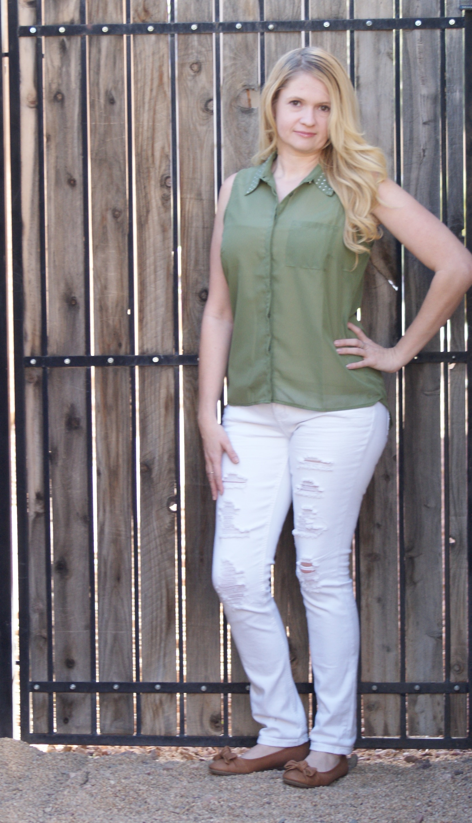 I wasn’t sure about the distressed look but it is so me. They are cute and definitely give a casual look which is so me! These shoes definitely help make the outfit!
