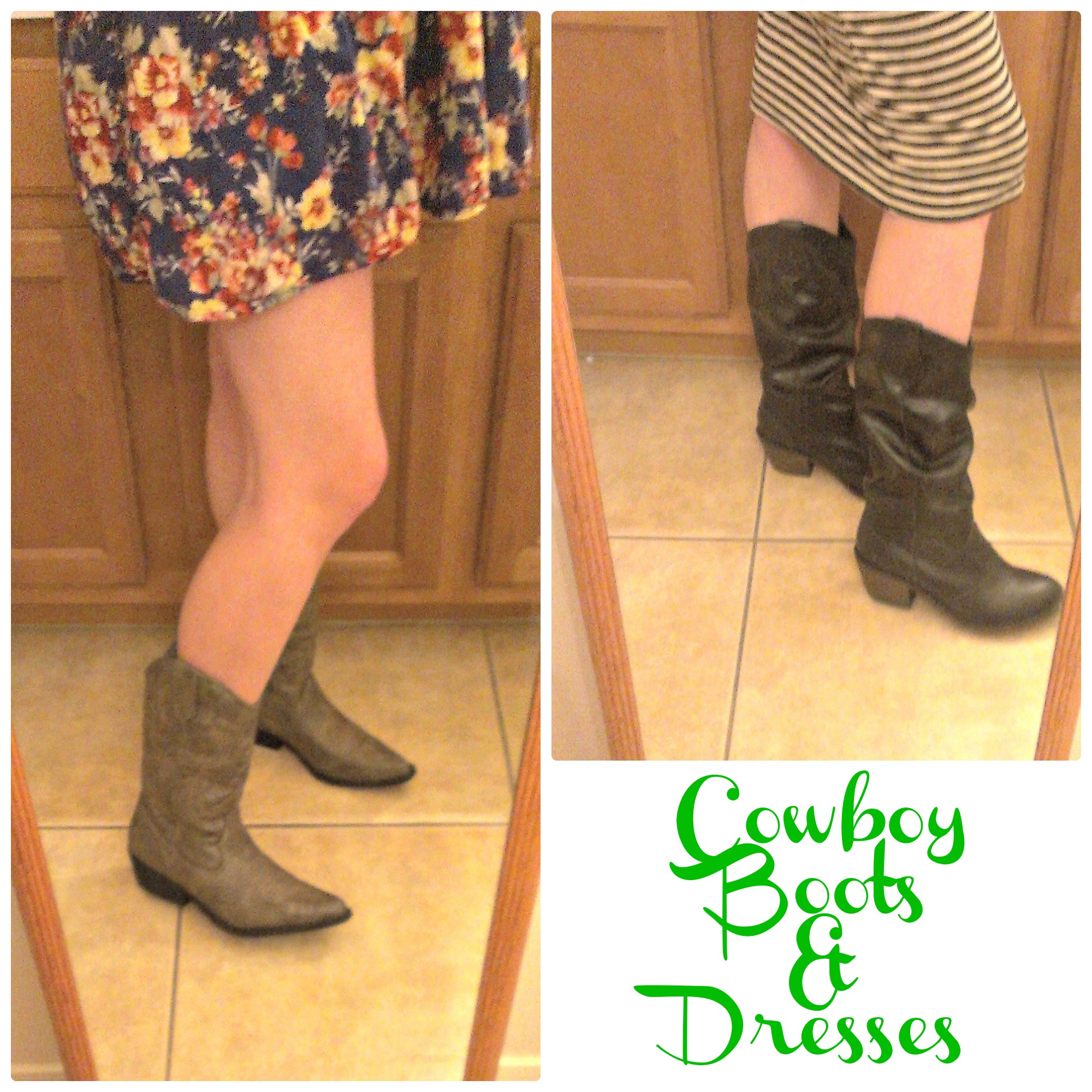 So I fell in love with all the Polyvore images on Pinterest that had cowboy boots paired with dresses. I was disappointed when I went to Target, found cute ones and they were not in my size. That night I went to Target.com and found them for half off on clearance! Wooo!