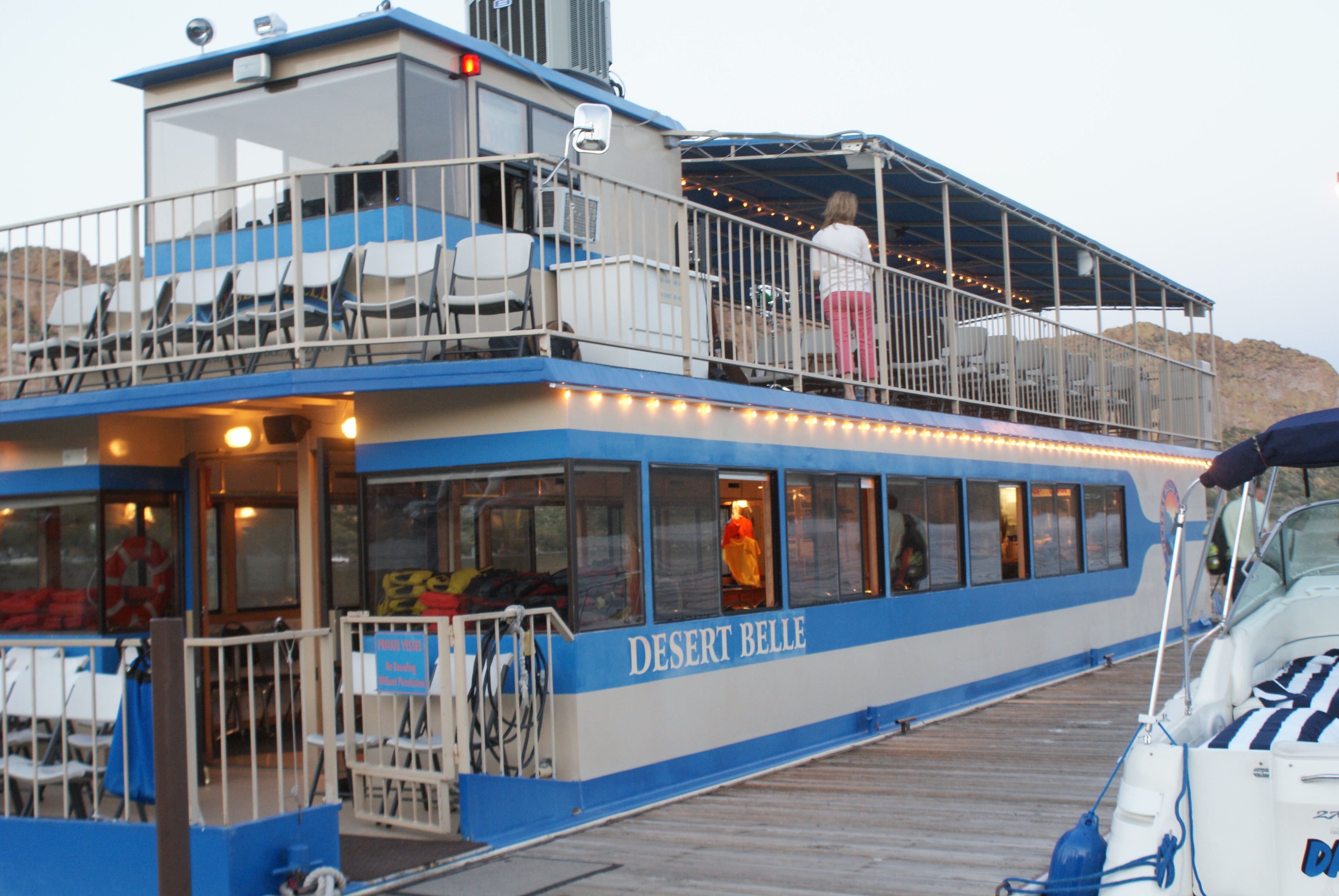 One thing I found on the site that I knew my kids would like was the Desert Belle. It is a boat cruise on Saguaro Lake that happens every day throughout the week throughout the day. Most are narrated where the captain explains the history of the area along with teaching about wildlife in the area. The 5:00 one we went on actually had a live band which was pretty cool. They played some fun songs that even my kids danced too! We did the 5:00 tour because I knew it was around sunset (and as you can see in the above photo, I was right). So we got to see the day features as well as the ones at sunset right before dark! Here are a few photos from our trip!