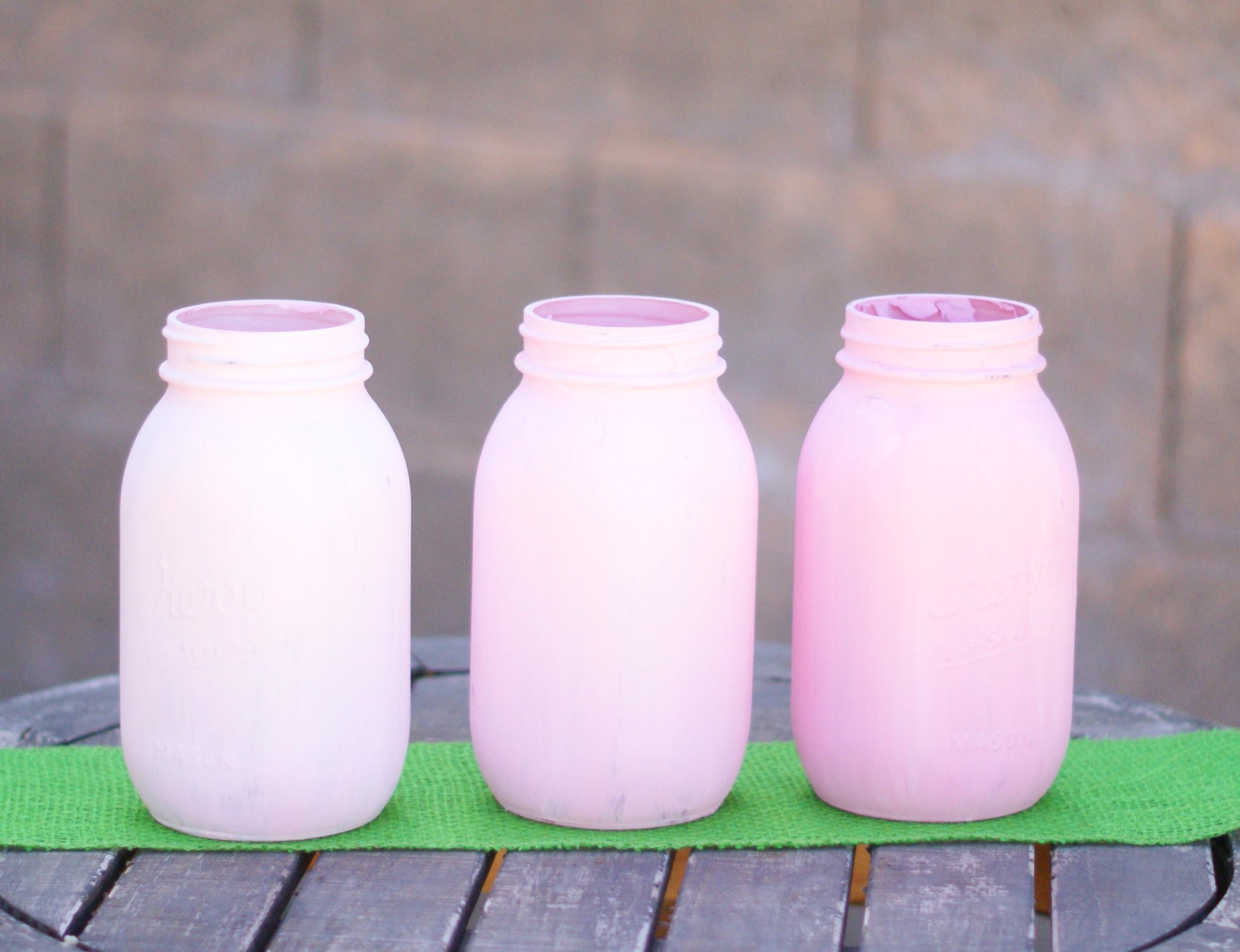 You may be asking, why tint it when Home Depot will tint it for free? Well the key here is I only want enough for each project I am doing. For example, if I am painting one mason jar a light pink color, and others another color, I don’t need a whole thing of paint that is pink. Instead since these are about $3, I buy one and split it up into different containers to make different colors. Also, you can get that exact color you want! It’s easy and economical I promise, stay with me.