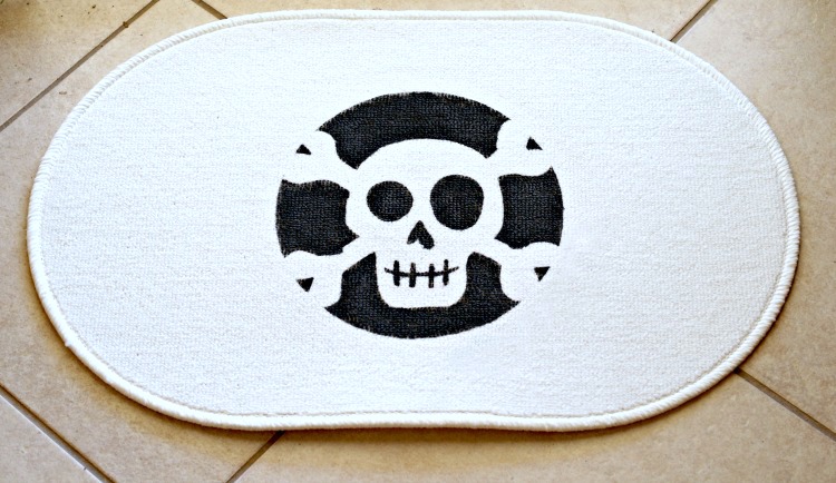 If you have been to Ikea, you have probably seen the white rug for less than $3.00. I picked one of these up recently and knew I wanted to do an Ikea Hack and turn it into a Skeleton Rug for Halloween. The cool thing about this rug is that the Clever Guy can have it in his room after Halloween!