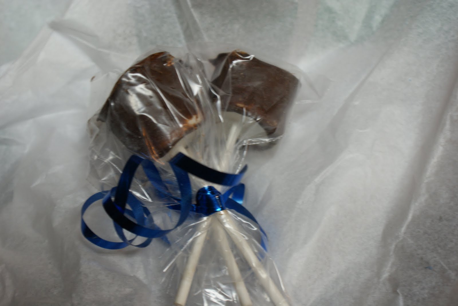 I also purchased mugs, Biscotti, aloe socks, chocolates and items to make chocolate covered marshmallows. I love to put a personal touch by making something and chocolate covered marshmallows are quick and easy. They also look and taste great! When the hot cocoa is hot, the marshmallow is stirred in and melts with the heat.