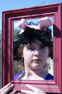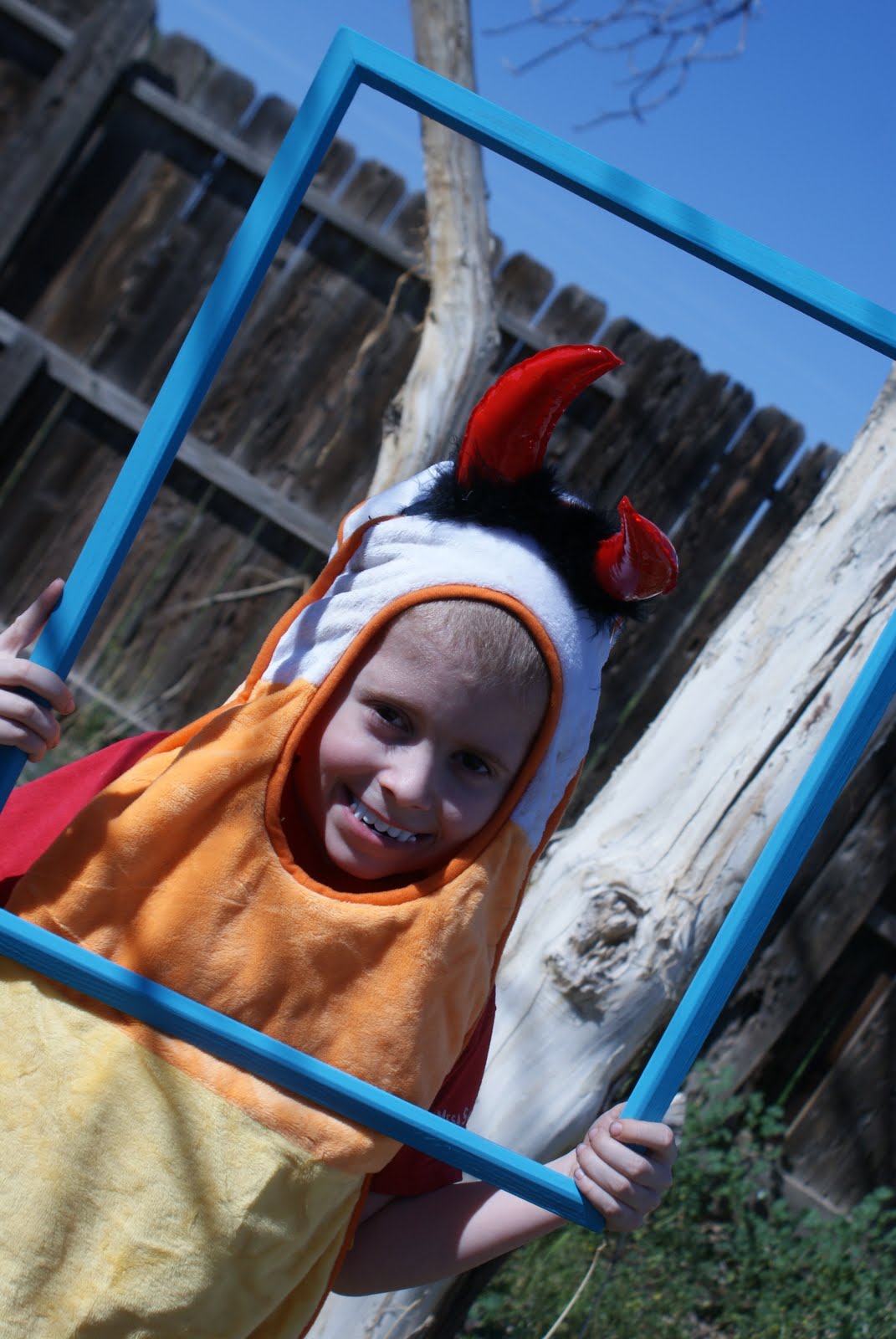 The kids and I got out the box full of costumes for Halloween, made a couple props and did a fun photo shoot. They thought this was hilarious and it didn’t cost us anything! We cut out a couple paper mustaches out of cardstock and painted a couple frames that we got at Goodwill for a buck!