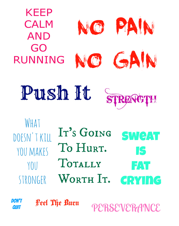 Just in case you need a little more motivation, I created the free Subway Art printable above: http://cleverpinkpirate.com/wp-content/uploads/2013/02/NOPAIN.pdf