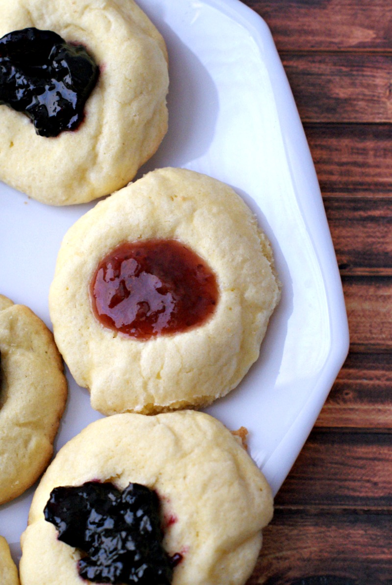 I love the flavors of Summer like blueberries, strawberries, peaches and more. One of my favorite things to do is make homemade jam with some of the fresh fruits we get from the farmer’s markets. We put that jam on everything from waffles to cookies! I remember loving jam thumbprint cookies when I was younger but hadn’t made them much in my adult life.