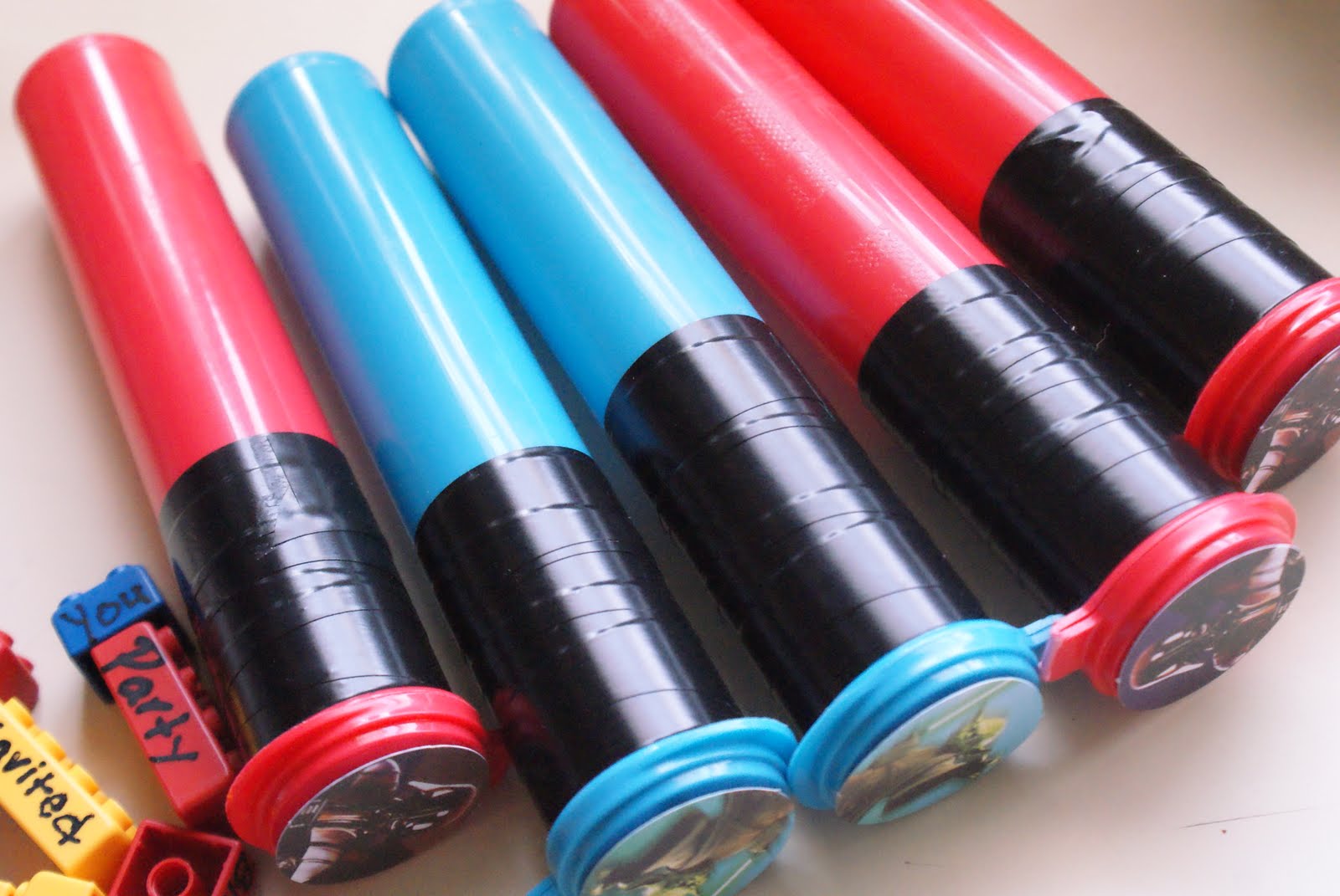 Lego Star Wars Party Invites with Legos and upcycled M&M tubes! An easy and fun DIY party invite!