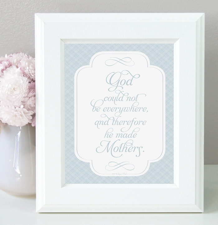 Lindsay from SugarFresh.Blogspot has this beautiful printable in 6 different colors for free on her blog. Just buy a cute frame to put it in! You can find the printable here: http://sugarfreshdesigns.blogspot.com/2012/04/free-mothers-day-printable.html