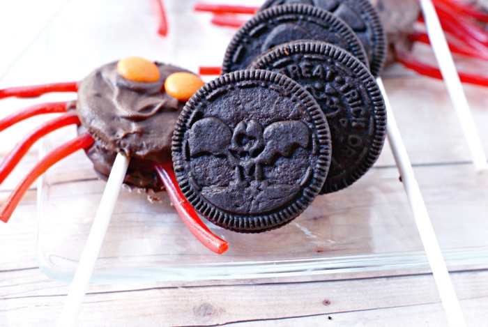 I’ve been in Halloween creation mode for these last few weeks. I’ve been crafting up some fun crafts and delicious recipes for the holiday. We made these tasty treats a couple weeks ago and the Clever Guy took them in his lunch box to school for a treat. These Spider OREO Pops are easy to make and kids love them! These feature the Halloween OREOS that are out right now. They have an orange cream filling with fun OREO prints on the outside.