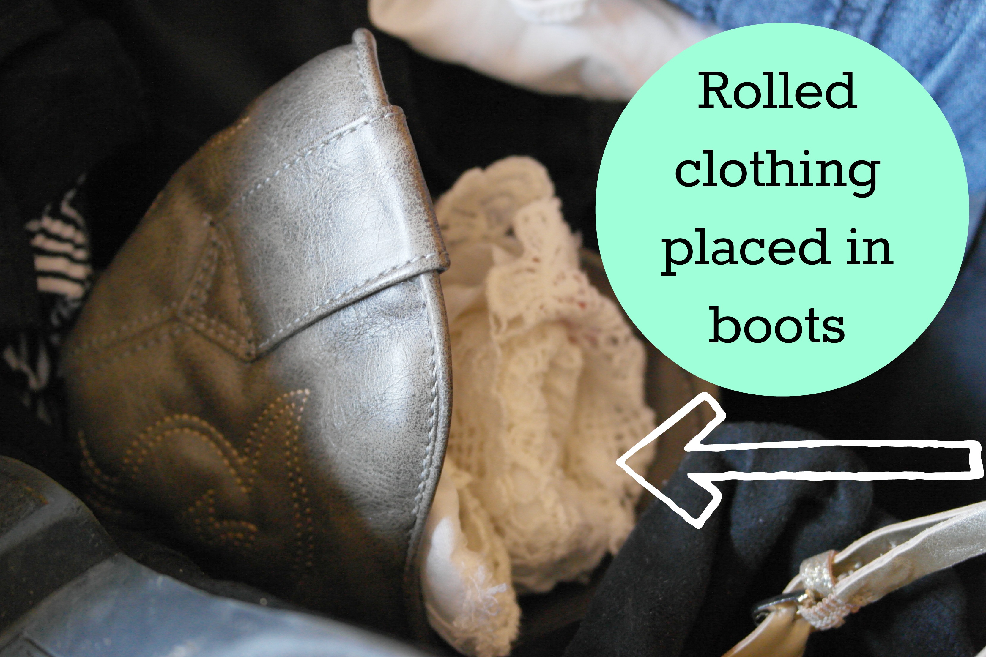 - Take advantage of empty spaces. As you start to pack, start building layers and putting your items in between other items like shoes to fill every crevice. I bring along at least one pair of boots on every trip and I be sure to pack items inside them. This also helps them keep their forms.