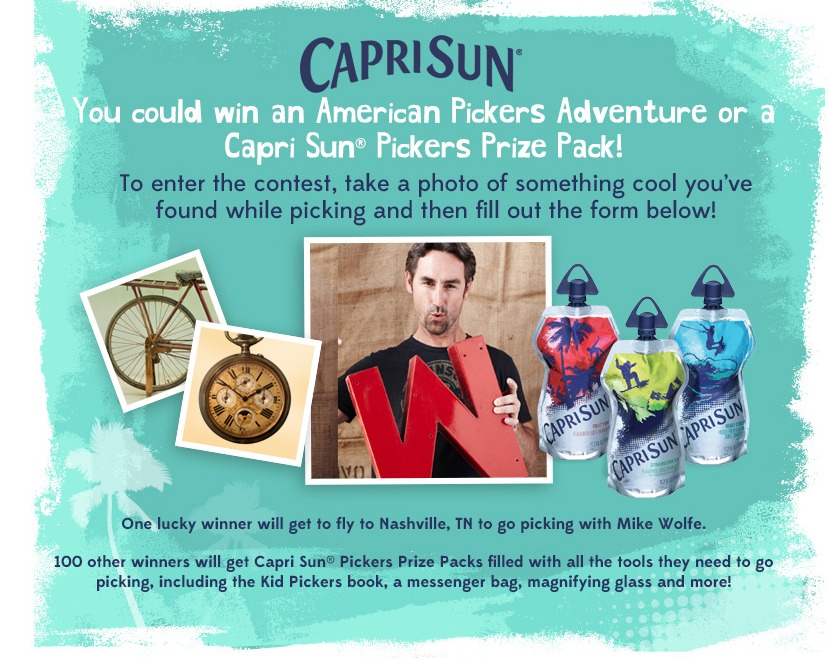 You can fall in love too and you could win a trip to go Picking with Mike Wolfe from the show, American Pickers (woot woot)! To enter, go to this site and upload a photo of your Pick (a Pick is an old item or artifact. Good places to find these objects are at garage and yard sales, secondhand stores, collectors shops, auctions, antique stores, flea markets, or your own house) along with a short essay about the photo. It is SO easy!