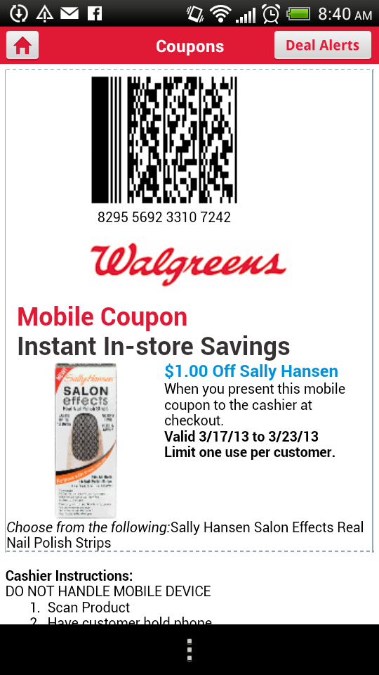 One thing I hadn’t tried yet but learned how to use at a Sally Hansen Demo was the Salon Effects strips. Have you seen these? They are nail polish strips that involve nothing other than a cuticle pusher to press down and they stay for about 10 days! There is no drying, no chance of messing them up and best of all, they are made for people like me. Since I love the look of nail art but can’t seem to even draw a straight line, the Salon Effects are perfect! There are SO many styles and I had a hard time choosing! Check out the skull and pink heart strips, I had to choose them! I’ll be wearing them at my upcoming conferences! When the Sally Hansen Demo representative was showing me how to use the Salon Effects, she put the lace one on one finger so I could have an accent finger. I like the lace one, heck I like them all! These strips are awesome! Thank goodness for coupons too, I found this on the mobile app!