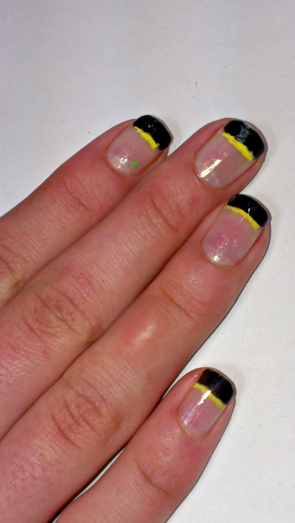 We saw black and yellow being trendy this Spring so this was her pick. Even though I must say I can’t believe black is coming back when I JUST started adding so much color in my closet. But I do love the contrast of these black and yellow nails, I’ll probably start putting some yellow and black outfits together soon!