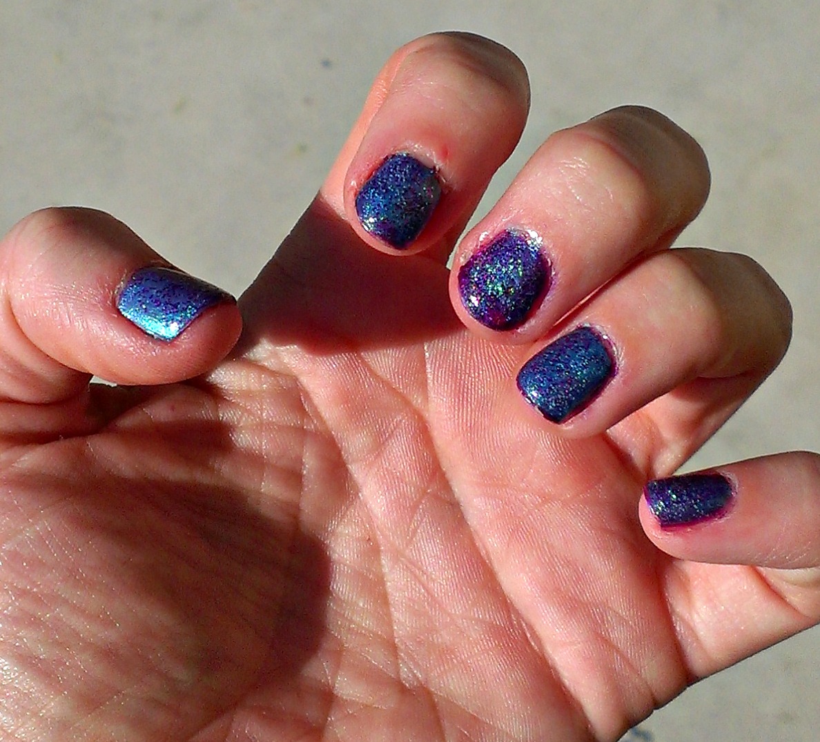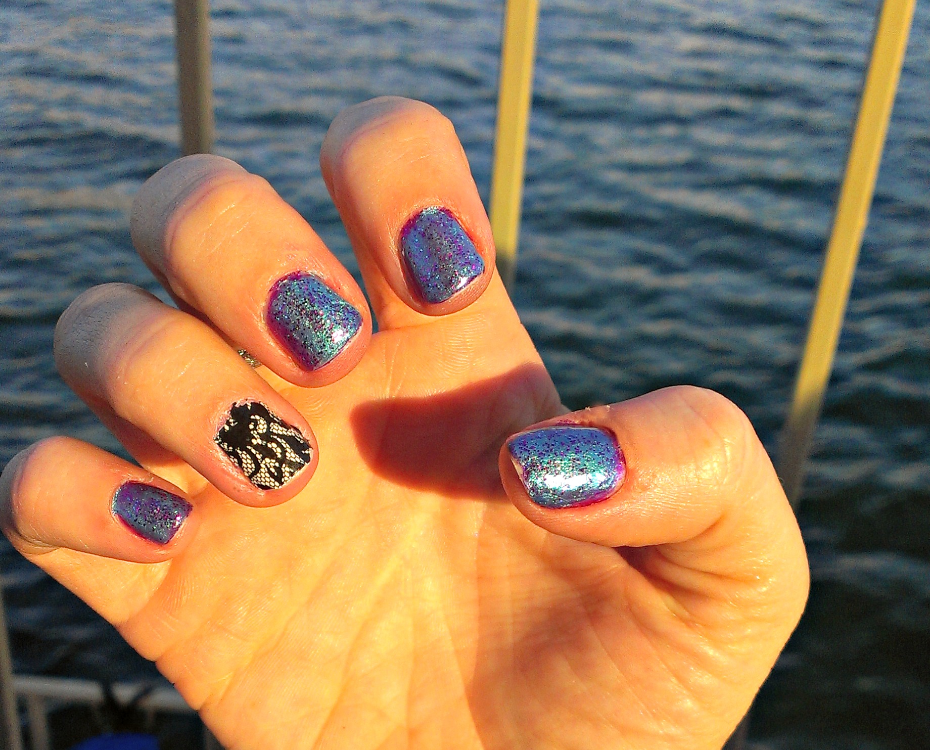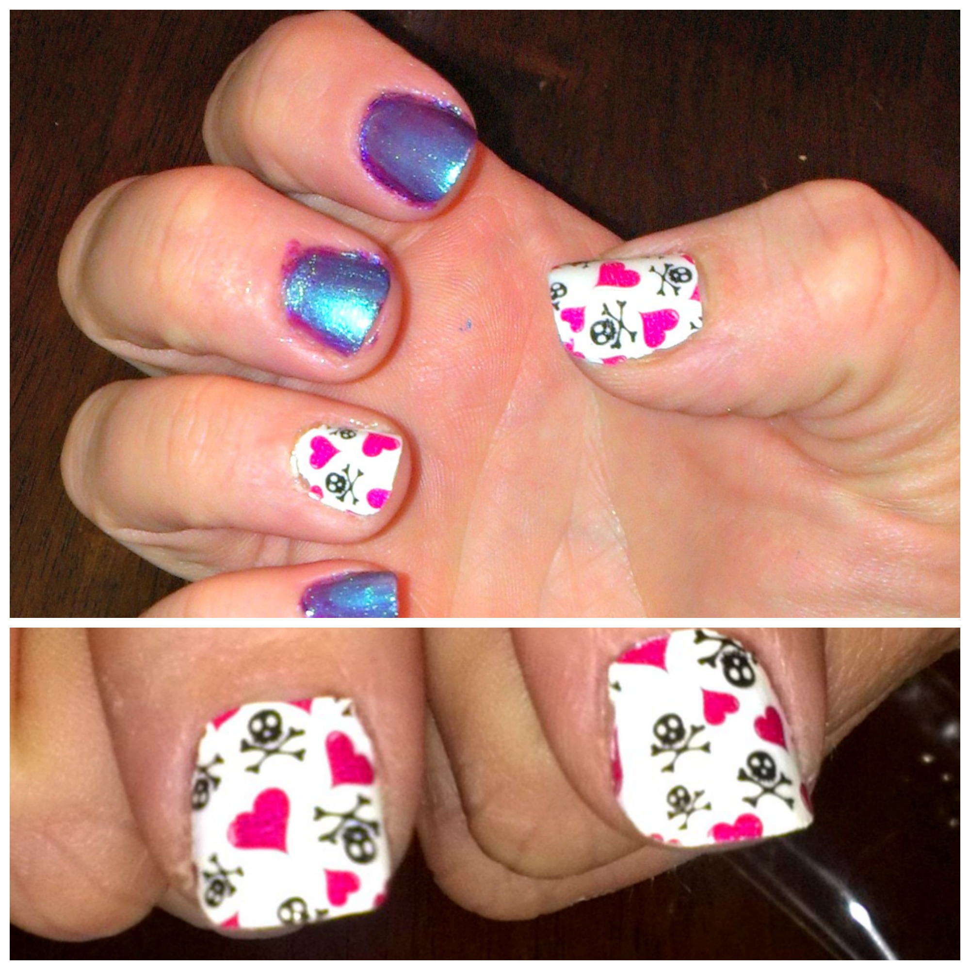 My friend did a shimmer look with Purple Passion XTreme, Blizzard Blue Xtreme polish and the pirate strips!