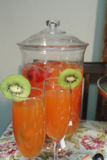 This drink recipe is just Strawberry Kiwi V8 Splash Juice with 4 cups of Sprite and some kiwi and strawberry fruit sliced and added in. You can add “adult” beverage of your choice to your glass if you would like!
