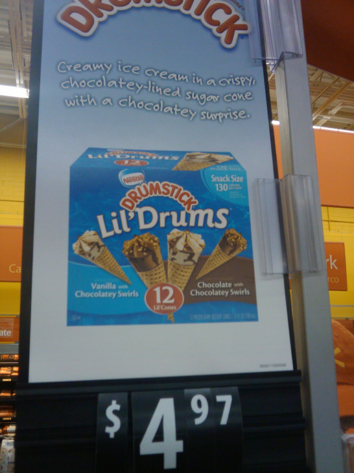 I’m giving this 5 starts because normally, I don’t indulge in Drumsticks because of the fat/calorie content. When we tried these at a sampling event, I was excited to find out that the Vanilla flavor only has 5 grams of fat! Also, these aren’t really little! These are a great size, perfect for a dessert for mom and the kids! I was also please because there wasn’t an overwhelming “nut” topping on them and of course the best thing about a Drumstick is the chocolate bottom and these do have that chocolate bottom! The cost is also great, it averages about $.50 a cone! No need to go out to fight the heat for a cool treat when these are in your freezer!