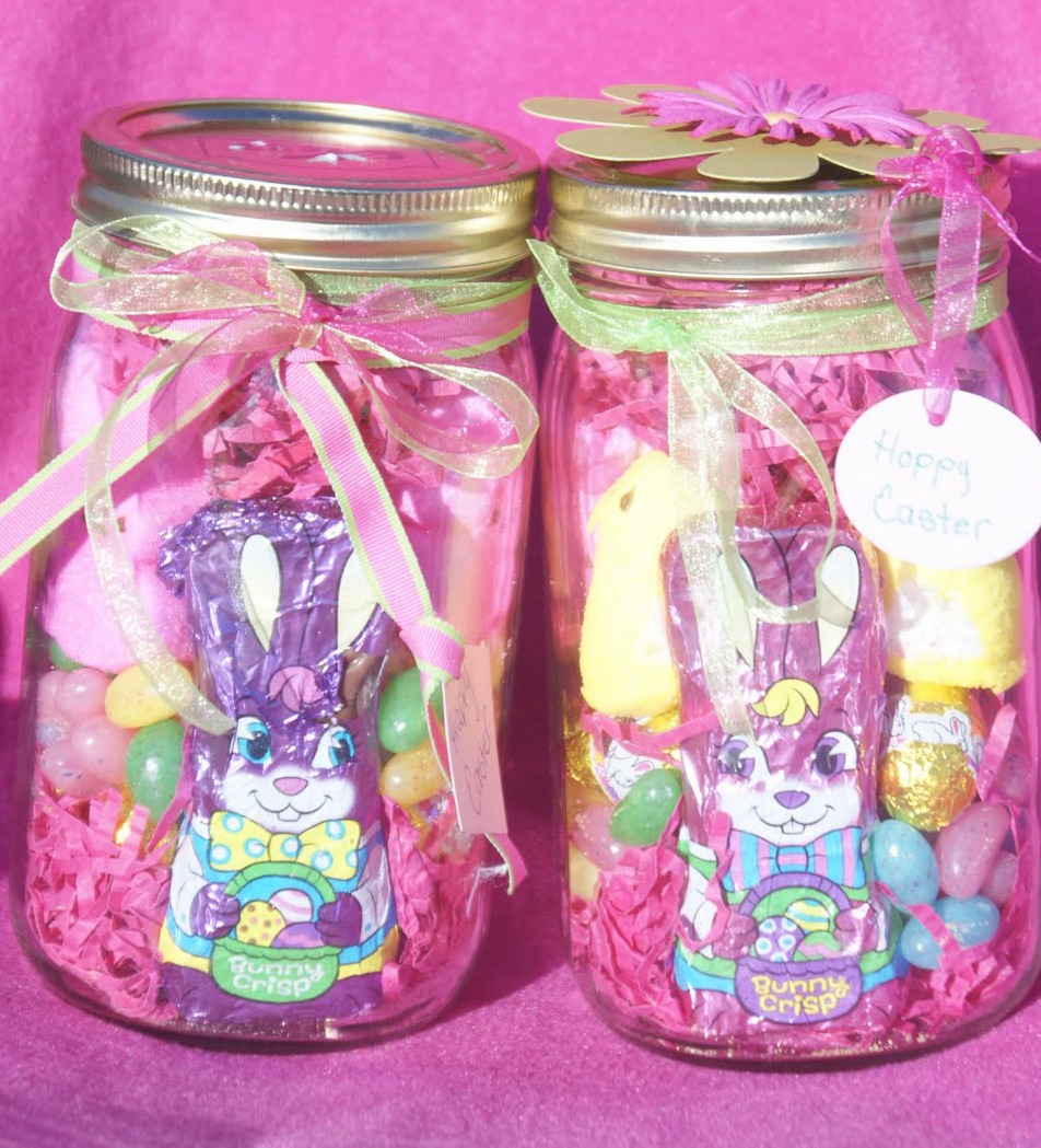 I used a crop – a – dile to punch holes in the top (if you don’t have one, you need one). I then put ribbon through the top twice. The ribbon on the jar is adhesed with Mod Podge.