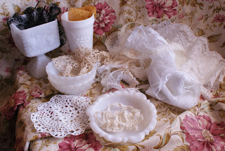 As you probably saw on my Grandma’s Treasure post, I love classic glass items. I also love lace, vintage or not I love the look of it and I am one who believes you can never have enough lace.