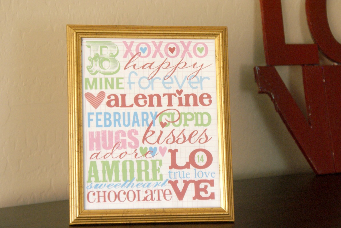 Valentine’s day is almost here and this will be the first time I will be officially decorating because we finally have room for it! One of the items I came across when looking on Pinterest for printables was the subway art pictured above. The subway art printables are great for unused picture frames or thrift store frames. This one was around $1 at Goodwill.